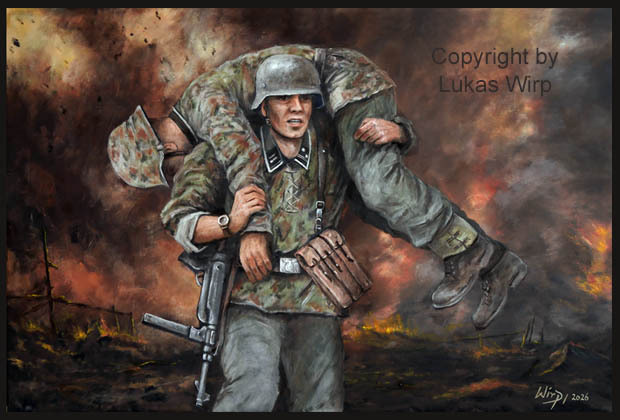 Das Gemälde wurde von Militärmaler Lukas Wirp nach Originalfotos einer Einheit des Bundeswehr Sanitätsdienstes gemalt.